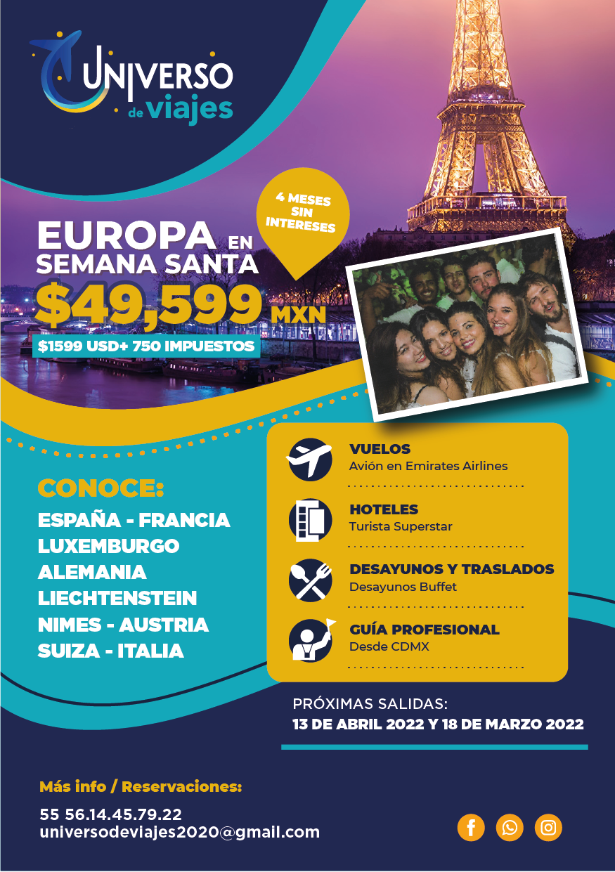 Si estás cansado de la vida de adulto millennial un viaje a Europa, o Dubai lo soluciona todo. Reúne a tus amigos y aprovechen nuestros paquetes especiales a un super precio (y mensualidades sin intereses). Vive la experiencia de tu vida con Universo de Viajes.